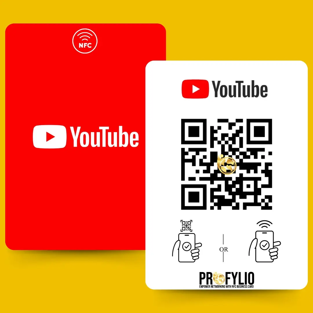 Elevate your digital sharing game with the YouTube NFC Card featuring a QR code! Seamlessly share your YouTube channel with a single tap or scan. Powered by Profylio.com.